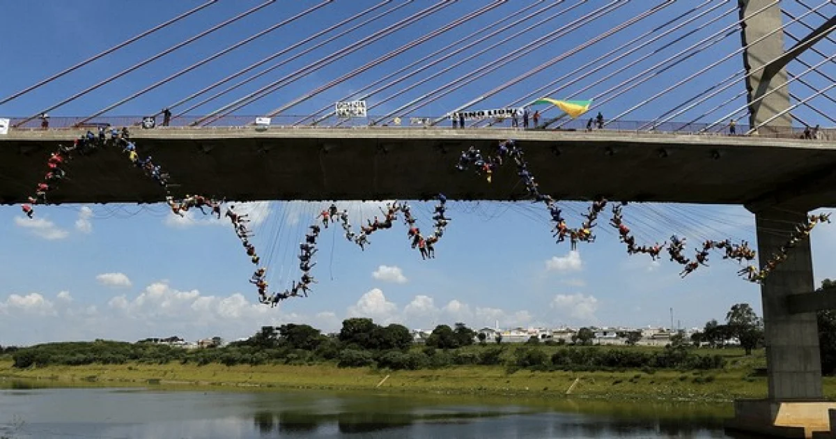 दुनियेत नवीन काही करून दाखवण्याची जिद्द असलेले कमी नाहीत आणि त्यांचे हेच प्रयत्न त्यांना अद्वितीय बनवते. परंतू एक दोन नव्हे तर सोबत 245 लोकं मिळून काही वेगळं करण्याचा विचार करतात तर हे काही नावीन्य घेतलेलं असतं. ब्राझील येथील हॉर्टोलांडिया येथे एका पुलावरून 245 लोकांनी एकत्र उडी मारली. या लोकांनी लावलेल्या उडीला गिनीज वर्ल्ड रेकॉर्ड्समध्ये जागा मिळालेली आहे.