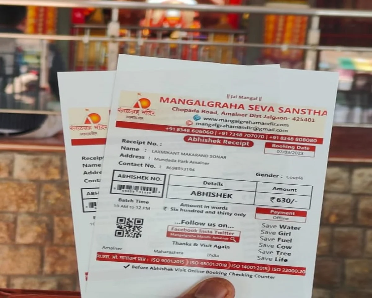 अमळनेर (जिल्हा जळगाव महाराष्ट्र)- येथील मंगळग्रह मंदिर हे अतिप्राचीन,अतिदुर्मिळ आणि अतिजागृत देवस्थानांपैकी एक मंदिर आहे. महाराष्ट्रासह, भारतभरातील भाविक आपल्या श्रद्धेमुळे येथे दर्शन व अभिषेकासाठी येत असतात. यामुळे भाविकांच्या सोयीसाठी मंदिरातर्फे आता ऑनलाईन अभिषेक बुकिंगची व पेमेंटची सुविधा उपलब्ध करण्यात आली आहे. भाविकांना अभिषेकासाठी व दर्शनासाठी मंगळग्रह मंदिरावर यायचे असेल तर घरबसल्या ऑनलाईन पद्धतीने अभिषेक बुकिंग व पेमेंट करता येणे सहज शक्य झाले आहे.