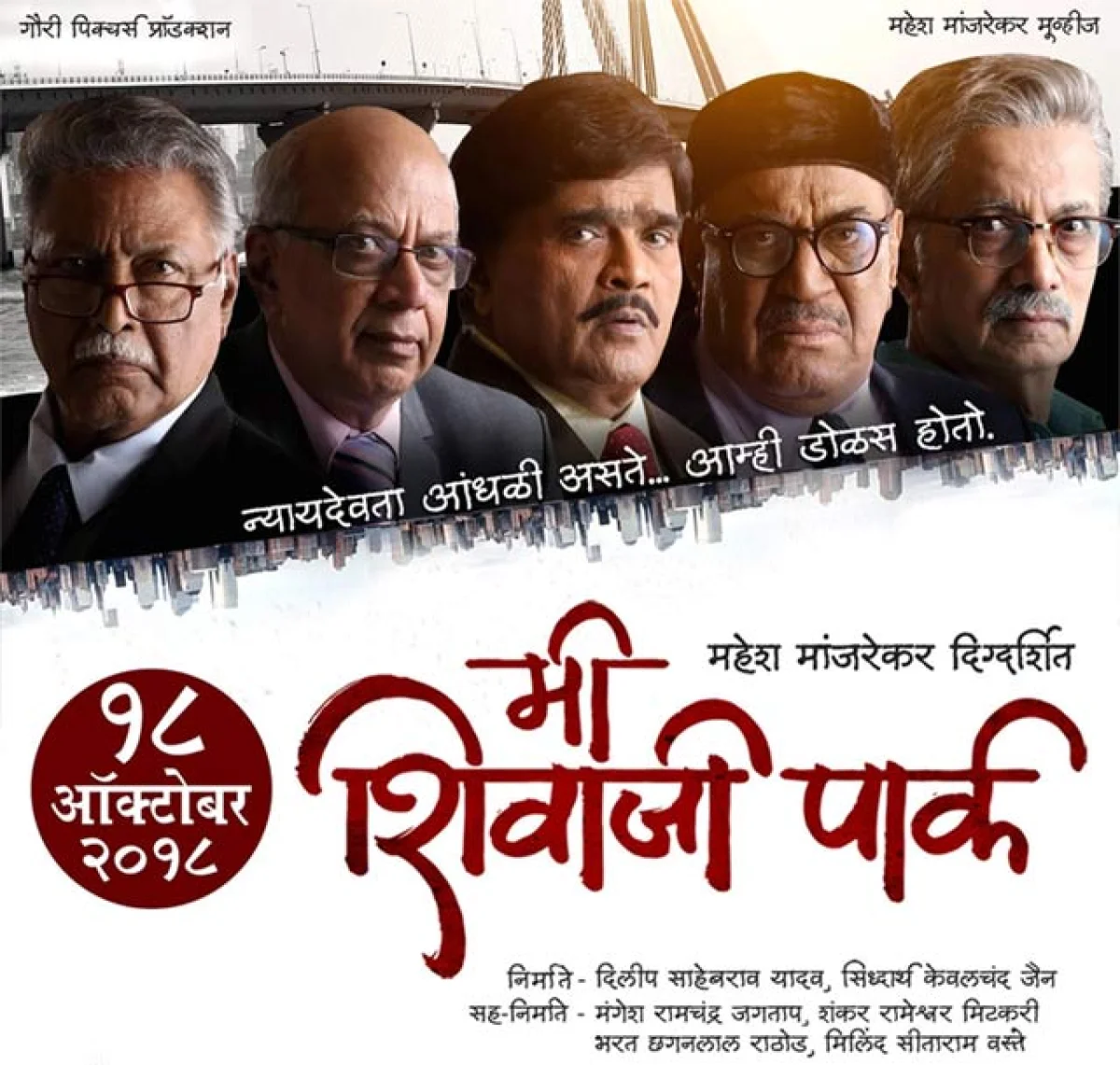 अभिनेता आणि दिग्दर्शक महेश मांजरेकर लवकरच ते ‘मी शिवाजी पार्क’ हा आगामी चित्रपट प्रेक्षकांच्या भेटीला घेऊन येत आहेत. ‘न्याय देवता आंधळी असते.. आम्ही डोळस होतो’, अशी टॅगलाईन आहे. नुकतच या चित्रपटाचं दुसरं पोस्टर प्रदर्शित झालं आहे. काही दिवसापूर्वी दिग्दर्शक, लेखक अभिराम भडकमकर यांनी त्यांच्या फेसबुक पेजवर या चित्रपटाचं पोस्टर शेअर केलं होतं.
