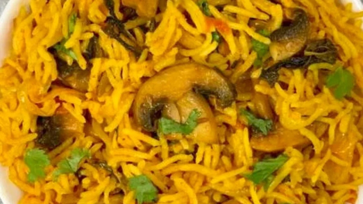 तांदूळ धुऊन पंधरा मिनिटं निथळत ठेवावे. त्यानंतर एका वेगळ्या पातेल्यात तांदूळ जेमतेम बुडतील एवढे पाणी घालून जरासा मोकळा भात शिजवून घ्यावा. कांदे उभे चिरून कढईत थोडे जास्त तेल घालून ब्राऊन रंगावर तळून घ्यावे. मग ते बाजूला एका पेपरवर काढून घ्यावे.