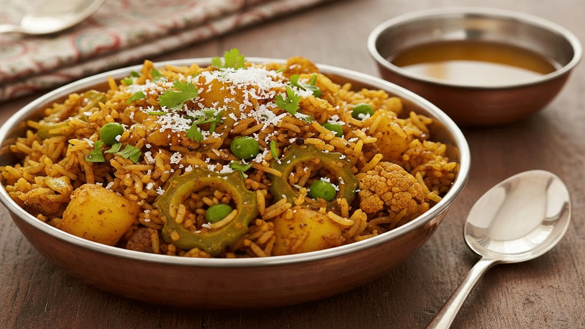 ८. सजावट: भात शिजल्यावर त्यावर ओले खोबरे आणि भरपूर कोथिंबीर घालून गरमागरम सर्व्ह करा.