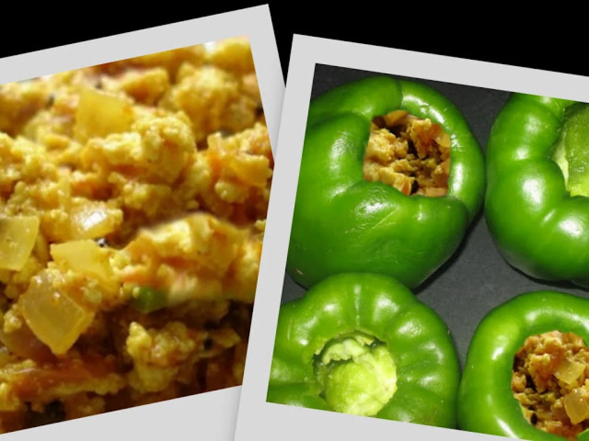 कृती : सर्वप्रथम मिरची भरलेल्या वांग्याप्रमाणे मधोमध कापून घ्या. बिया काढून घ्या. एका भांड्यात मक्याचे दाणे व मसाल्याचे सर्व साहित्य एकत्र करून तेलाचे मोहन घाला. मिरचीच्या बिया त्यातच घाला थोडे दही घालून मिश्रण ओलसर करून घ्या. कढईत तेल, जिरे व मोहरी व हिंग घालून फोडणी करा व तेलावर मिरच्या पसरून लावा. मंद आचेवर मिरच्या लालसर होऊ द्या. बाजू उलटून घ्या. सर्व बाजूंनी मिरची लाल झाल्यावर गॅस बंद करा. झटपट भरवा सिमला मिरची तयार होईल.
