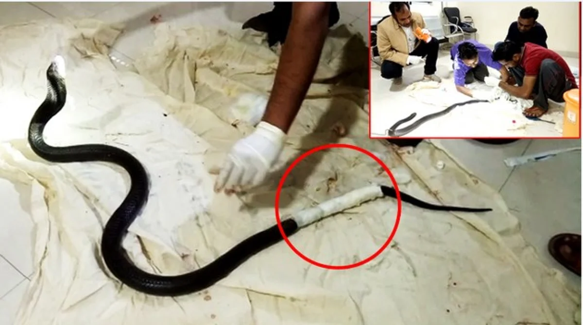 सूत्रांप्रमाणे कोबरा जखमी झाल्याची सूचना मिळाली होती. ते जखमी कोबरा कारने ऑफिसला घेऊन गेले आणि महराष्ट्राच्या पालसनेर येथे राहणारे लक्की जगदेव आणि अरविंद जमादारने त्यावर उपचार केला. हे अधिकारी सर्पप्रेमी म्हणून ओळखले जातात.