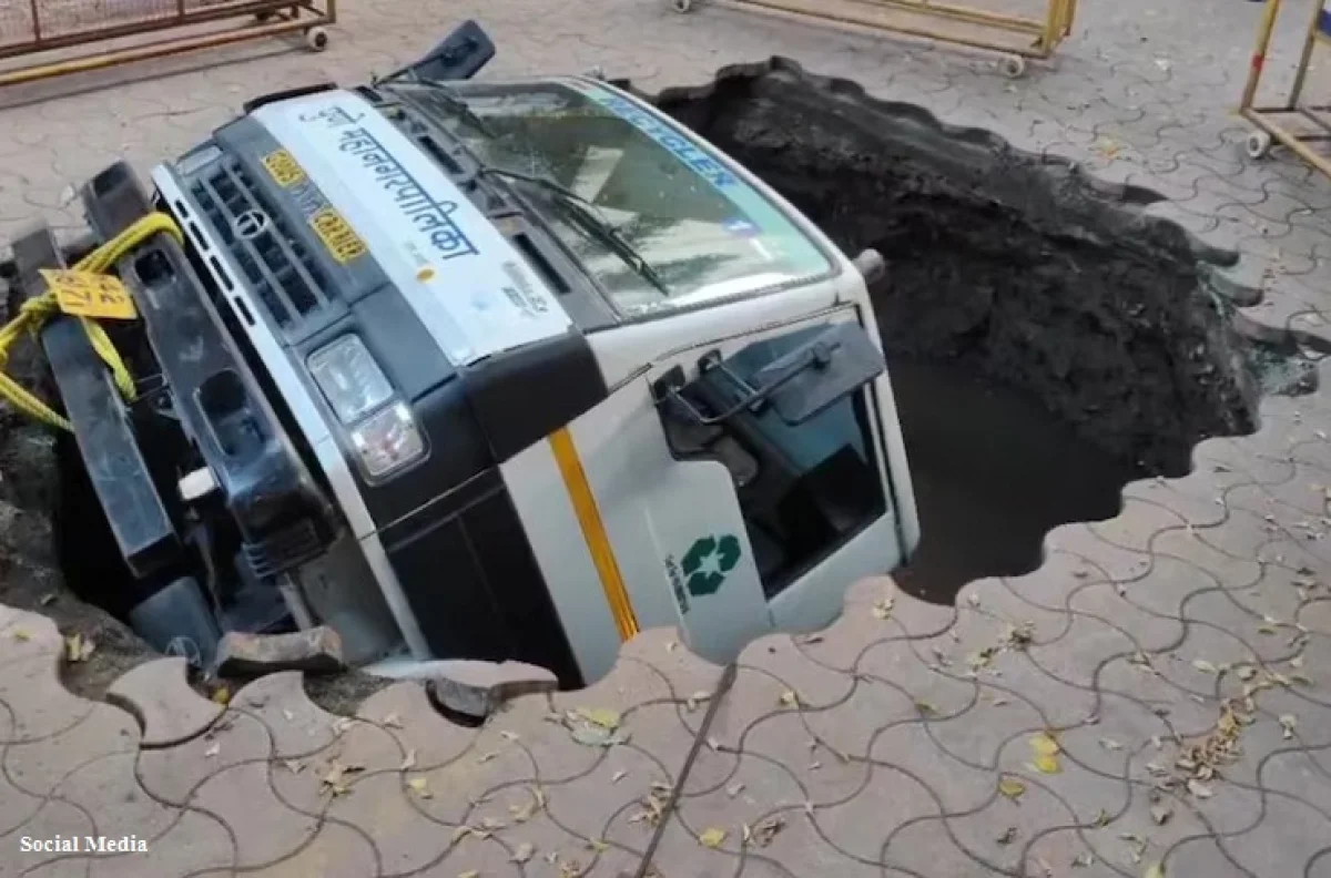 मिळालेल्या माहितीनुसार, सिटी पोस्ट बिल्डिंगची ड्रेनेज लाइन साफ करण्यासाठी ट्रक आला होता. दुपारी चारच्या सुमारास ट्रक सिटी पोस्ट परिसरात पोहोचला. पण ट्रक रिव्हर्स घेत असताना अचानक त्याच्या मागे जमिनीचा काही भाग आत घुसला आणि एक मोठे खड्डे तयार झाले आणि हळूहळू ट्रक पूर्णपणे जमिनीत बुडाला आणि खड्डा अधिक खोल झाला. सुदैवाने ट्रक चालकाने खिडकीतून उडी मारल्याने तो बचावला.