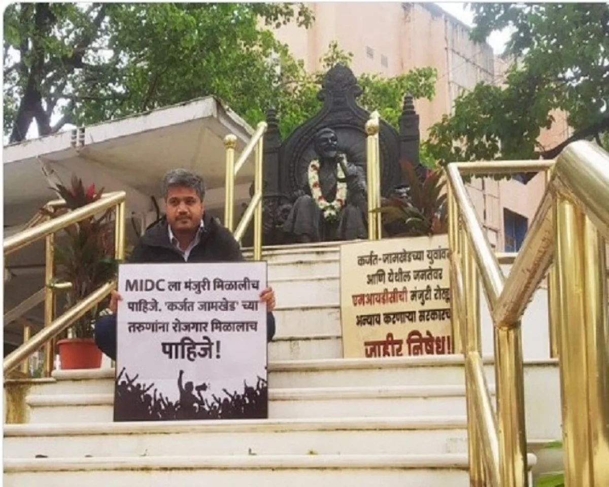 सध्या राज्य विधिमंडळासह पावसाळी अधिवेशन सुरु आहे. राष्ट्रवादीचे आमदार रोहित पवार स्थानिक भूमिपुत्रांना न्याय मिळवून देण्यासाठी विधानभवन परिसरात शिवरायांच्या पुतळ्याजवळ एकटेच आंदोलनाला बसले आहे. कर्जतच्या जामखेड मतदार संघातील एमआयडीसी या मुद्द्यावरून हे आंदोलन केल्याचे म्हटले जात आहे. अधिवेशनात या मुद्द्याकडे सर्वांचं लक्ष जावे या साठी हे आंदोलन करण्यात आले आहे. ते म्हणाले अहमदनगर जिल्ह्यातील कर्जत जामखेड विधानसभा मतदार संघातील बेरोजगार युवकांना रोजगाराची संधी उपलब्ध व्हावी, तसेच कर्जत जामखेडच्या सर्वांगीण विकासाला चालना मिळावी .या साठी हे आंदोलन सुरु आहे.