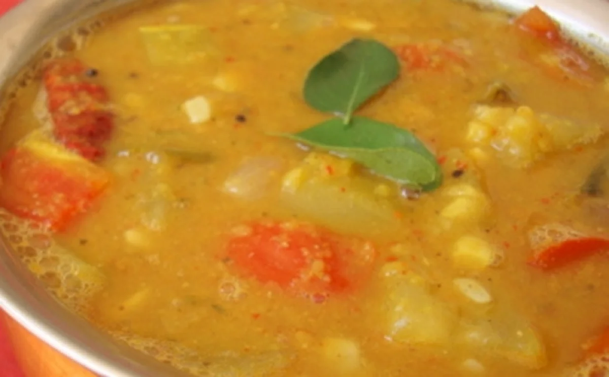 कृती : सर्वप्रथम टोमॅटो स्वच्छ धुऊन मिक्सरमधून बारीक करून घ्या. फोडणी देऊन त्यात सर्व टोमॅटोचे पाणी, शिजवलेली डाळ, सर्व मसाला कुटून 10 मिनिटे उकळू द्या. वरून खोबर्याचा किस, कोथिंबीर टाका. हे सांबार खिचडी, इडली, वडा, डोसा बरोबर ही घेता येईल. ते नुसते पिण्यासही चविष्ट लागेल.