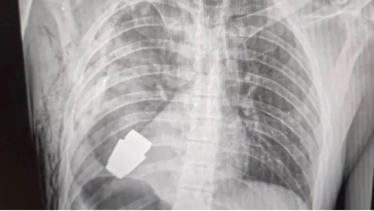 युक्रेनच्या सैनिकी वैद्यकसेवेने फेसबूकवर त्याचा एक्सरे फोटो प्रसिद्ध केला आहे. या सैनिकाच्या हृदयाच्या अगदी जवळ हे ग्रेनेड असल्याचं दिसतं.