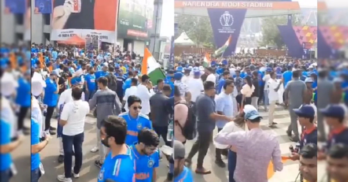 Video- Crowd Gathered Outside Narendra Modi Stadium: वर्ल्ड कप 2023 मधील भारत आणि पाकिस्तान यांच्यातील महान सामना 14 ऑक्टोबर रोजी अहमदाबादच्या नरेंद्र मोदी स्टेडियमवर होणार आहे. या सामन्यापूर्वी, अहमदाबादमधील सराव सत्रादरम्यान दोन्ही संघ प्रचंड घाम गाळताना दिसले होते. आत्तापर्यंत दोन्ही संघ एकदिवसीय विश्वचषकात 7 वेळा आमनेसामने आले आहेत. भारताने सर्व 7 सामन्यात पाकिस्तानचा पराभव केला आहे. दरम्यान, भारत विरुद्ध पाकिस्तान सामन्यापूर्वी नरेंद्र मोदी स्टेडियमबाहेर गर्दी जमली होती. ज्याचा व्हिडिओ समोर आला आहे. आपण खाली पाहू शकता.